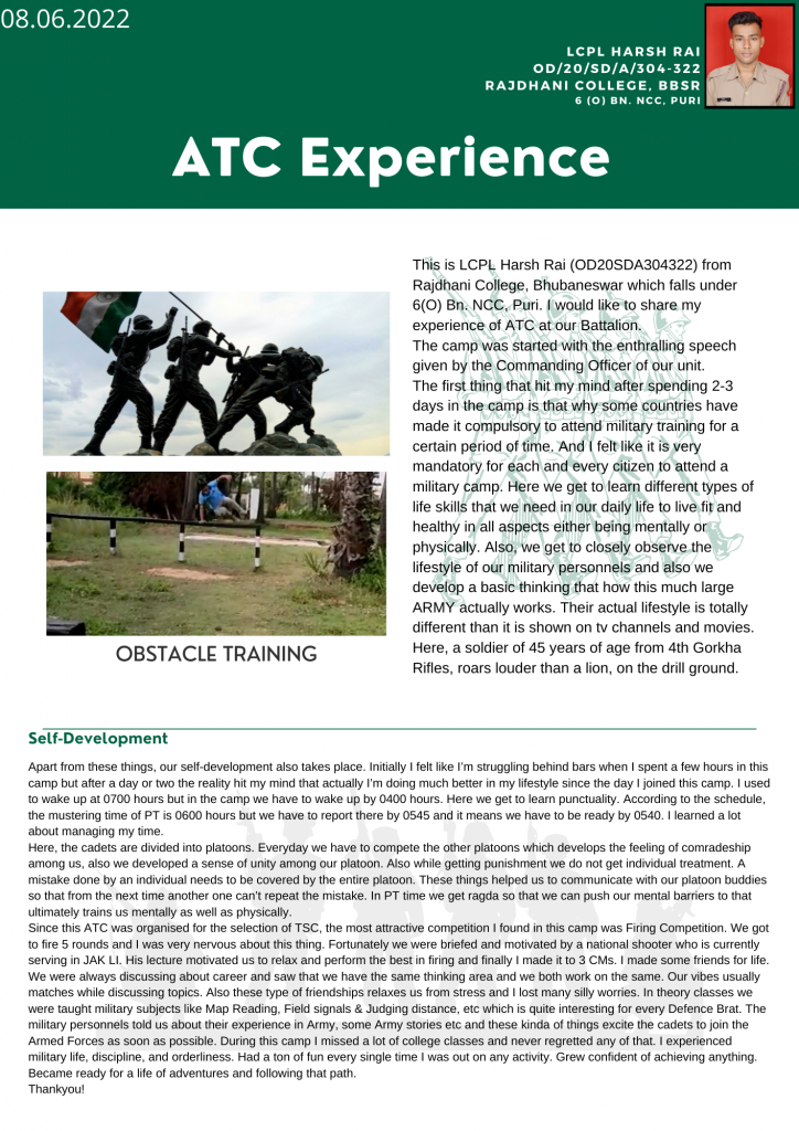 LCPL Harsh Rai from Rajdhani College, Bhubaneswar.