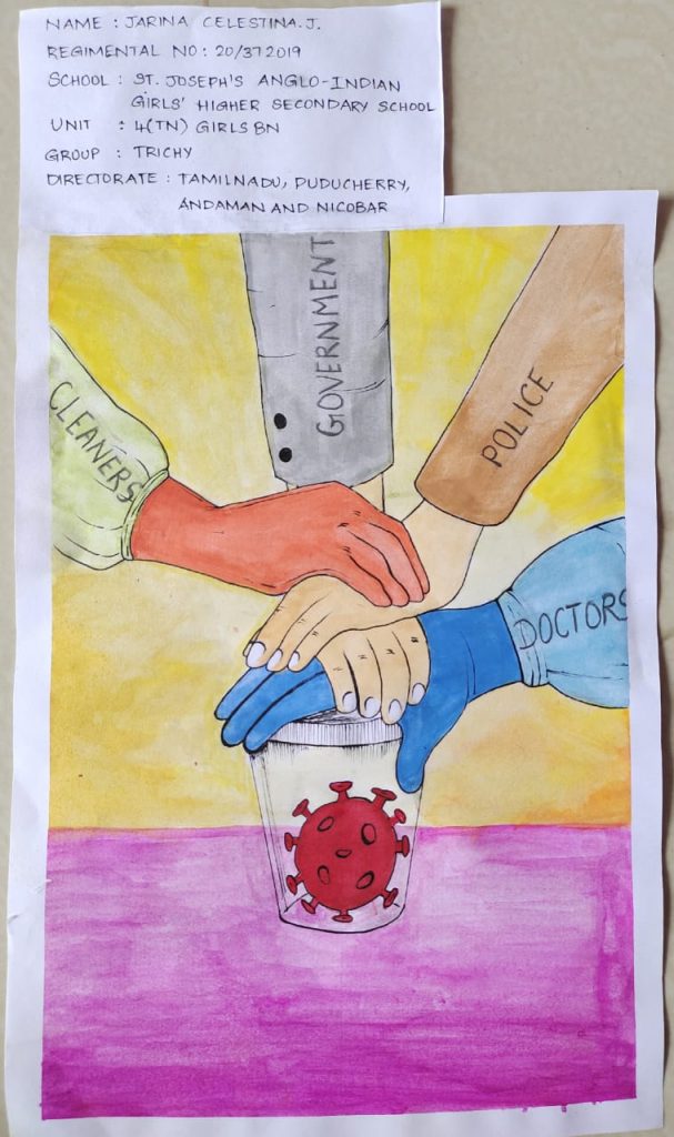 NAME : J.Jarina Celestina REGIMENTAL NO: 20/372019 SCHOOL : St.Joseph's Anglo Indian Girls' Higher Secondary School. UNIT : 4(TN)Girls BN GROUP : Trichy DIRECTORIATE : TAMILNADU, PUDUCHERRY, ANDAMAN AND NICOBAR