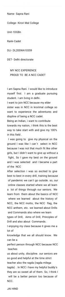 I cadet priyanka Chauhan from 1gj girls BN NCC Ahmedabad