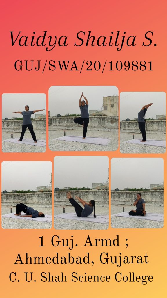 Jai Hind! I am Cdt. Shailja Vaidya from 1 Guj Armd, Ahmedabad, Gujarat. This is how I celebrated the 7th International Yoga Day from my home amid the prevailing corona conditions.