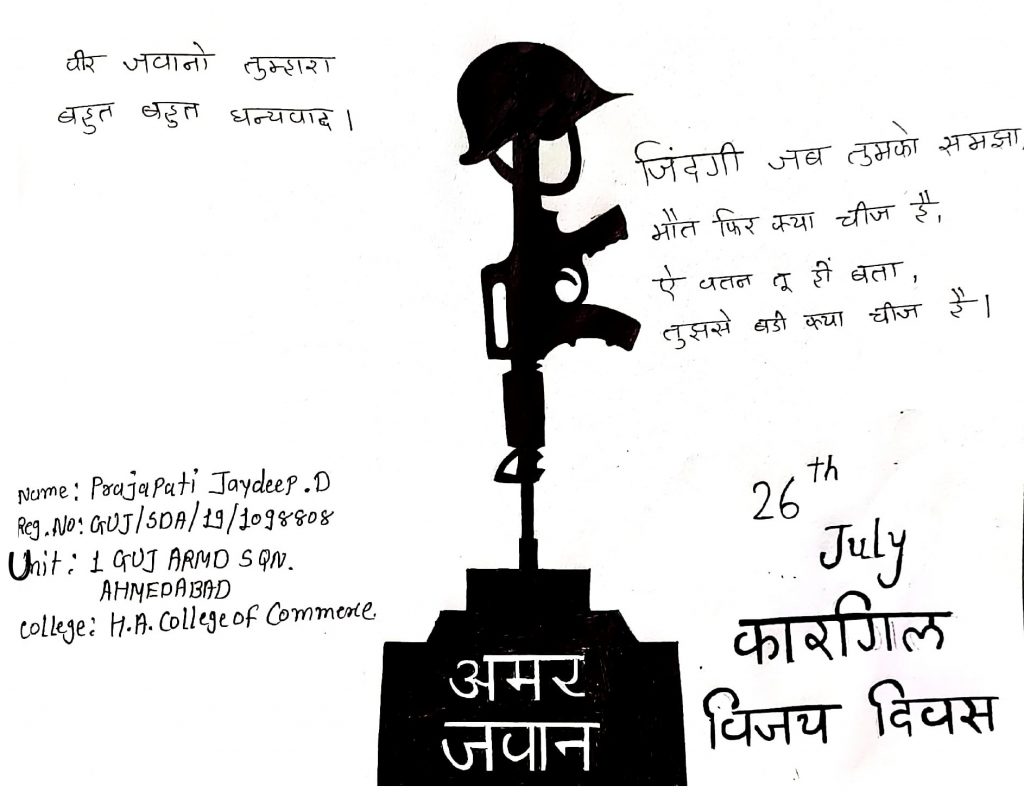 REG NO: GUJ/SDA/19/1098808, CADET: PRAJAPATI JAYDEEP DINESHKUMAR , 1 GUJ ARMD SQN Ahmedabad , H.A.College of commerce.