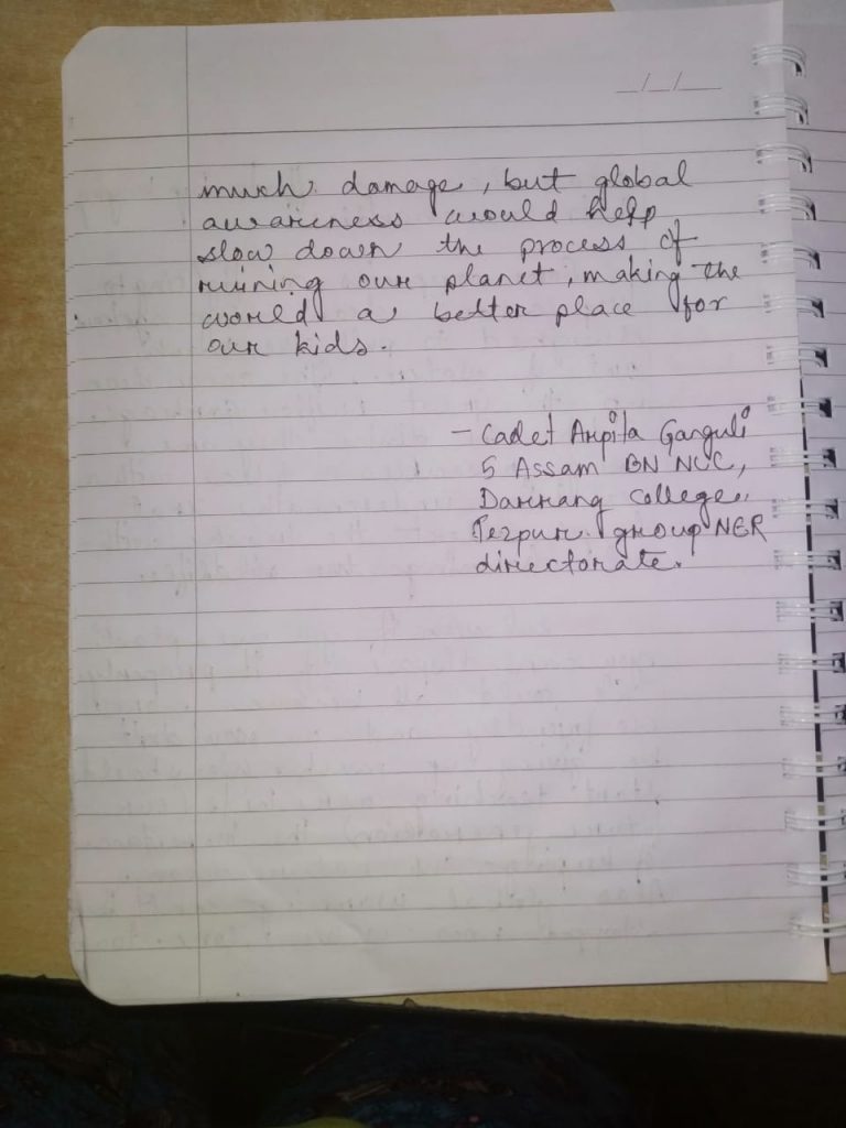 Name: CDT Barsha Tanti Reg No: AS19SWA111110 Unit: 5Assam BN NCC College: Darrang College, Tezpur Group: Tezpur Directorate: NER