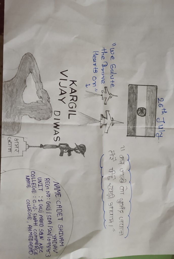 I cadet shivam yadav from 1 Gujarat armd sqn ncc ahmedabad. Upload a painting 26th july kargil vijay divas. #jay hind