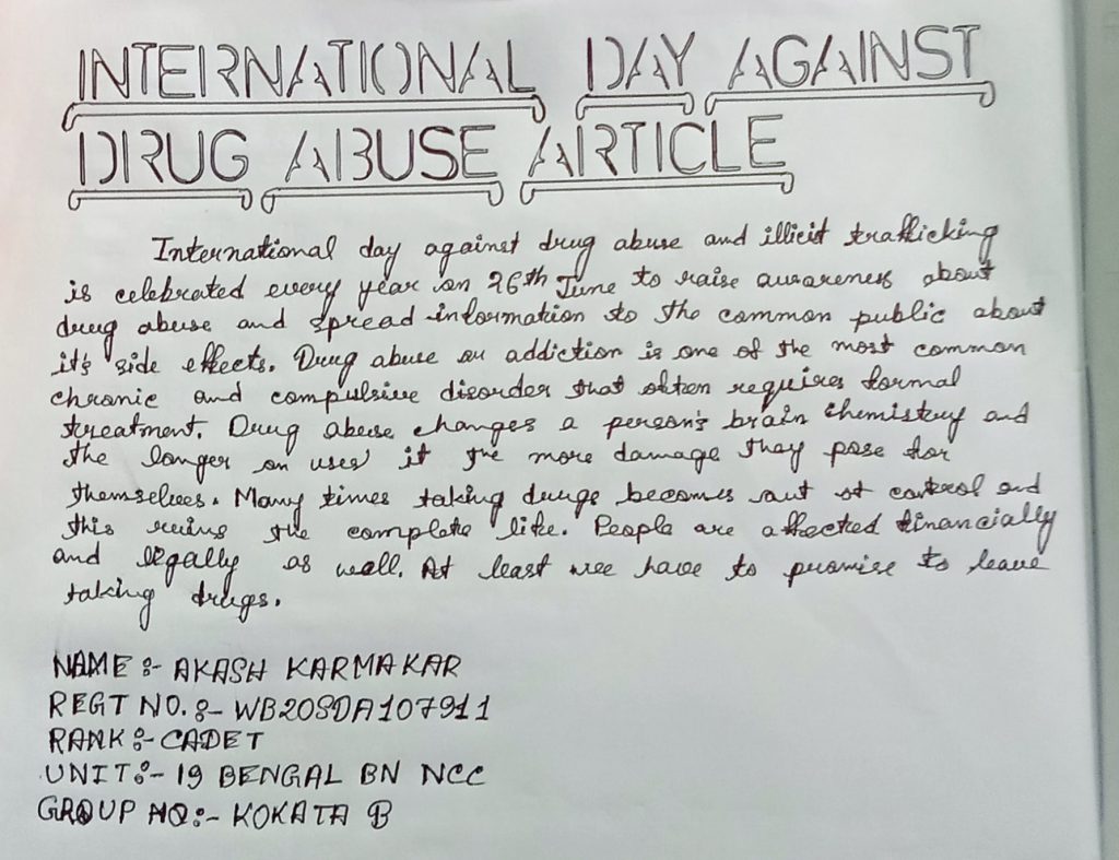 Name - Akash Karmakar Regt No. - WB20SDA107911 Rank - Cadet