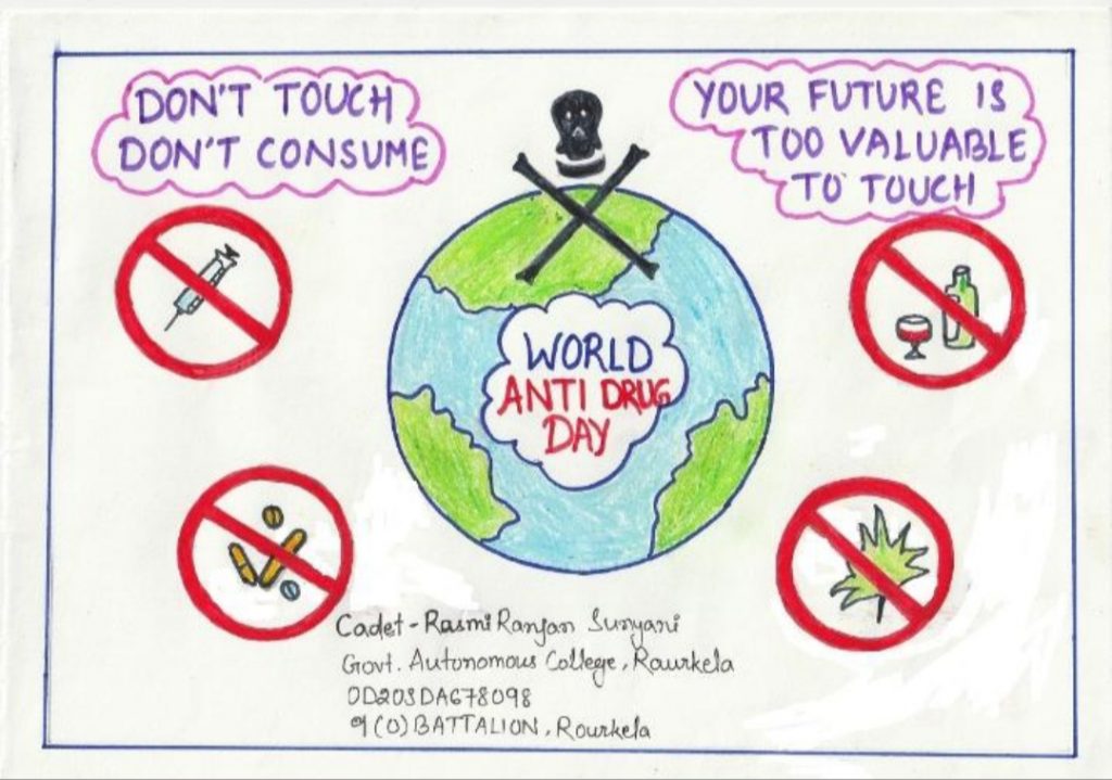jai hind sir i am cadet gargi sk nagwanshi MP20/SWA/126596 4MP Girls Battalion Sri Sathya Sai College For Women Bhopal Sir i have made a poster on the occasion of international day against drug abuse and illicit trafficking