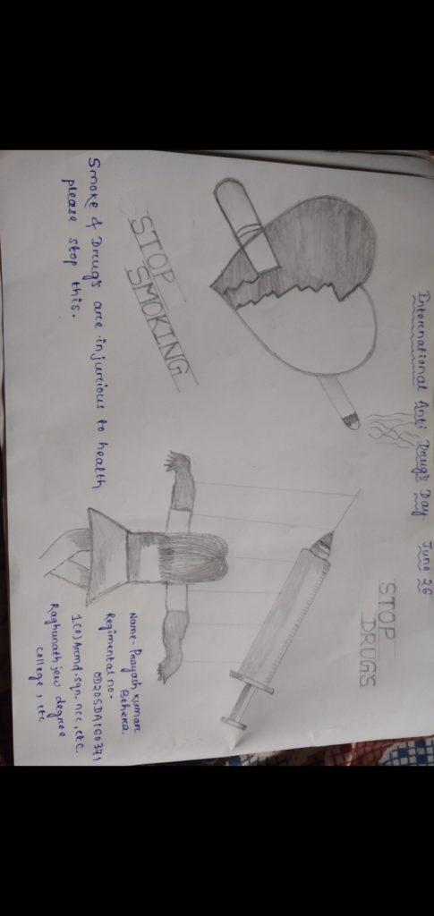 Poster by Cdt MOONA QUEEN of 1(O) Girls BN, CTC GPHQ, ODISHA dte. Addiction of any sort is never good for you and your dearer ones. On this day, let's raise our voice against drug abuse and make our stand for a better society!