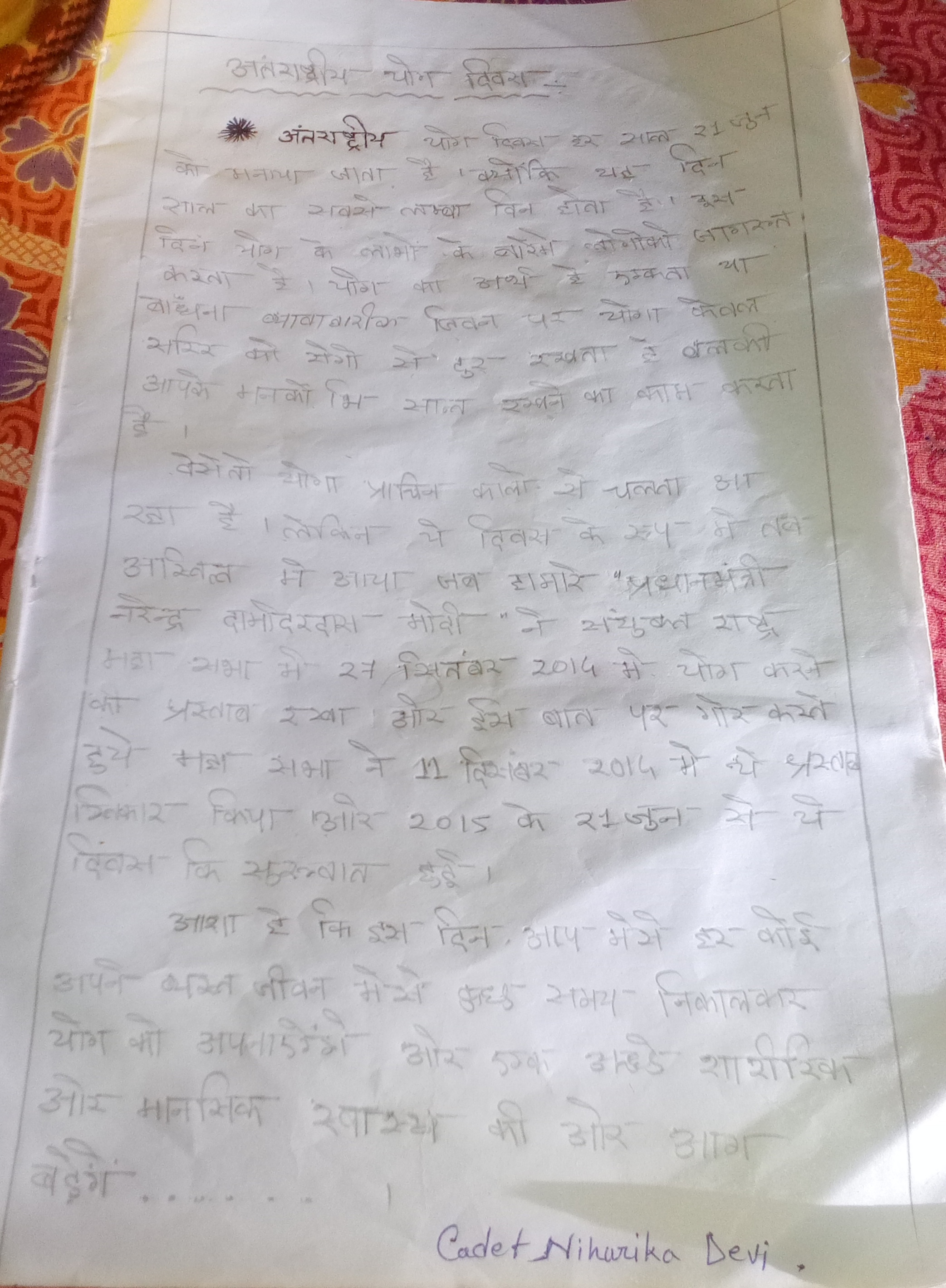 Jai Hind.Regarding the international yoga day,our college NCC army prepared a task on yoga .