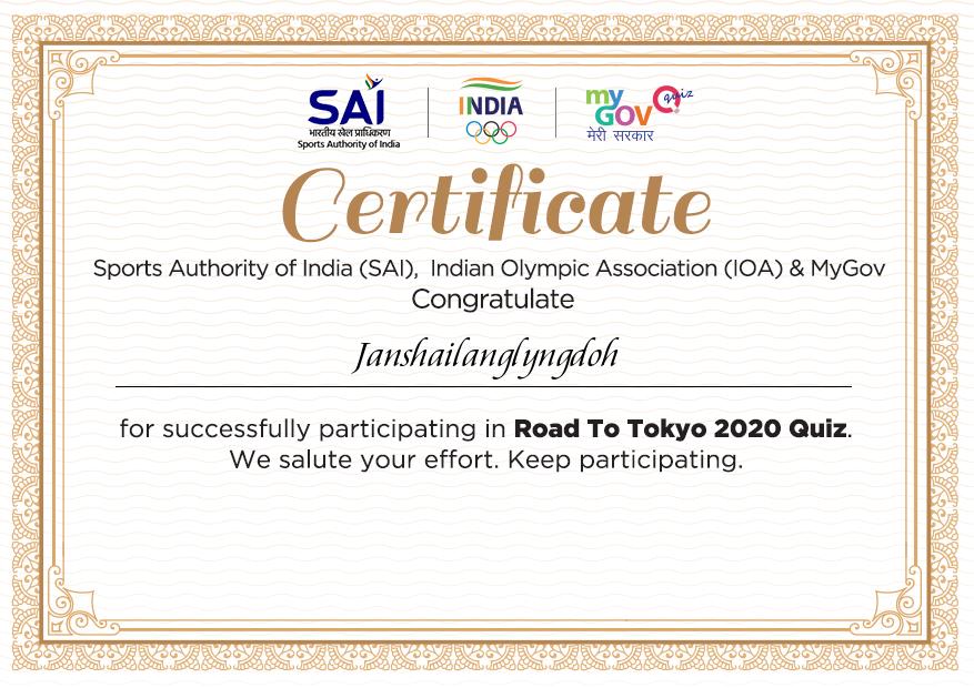 Road to Tokyo 2021 Quiz. Certificate of Participation