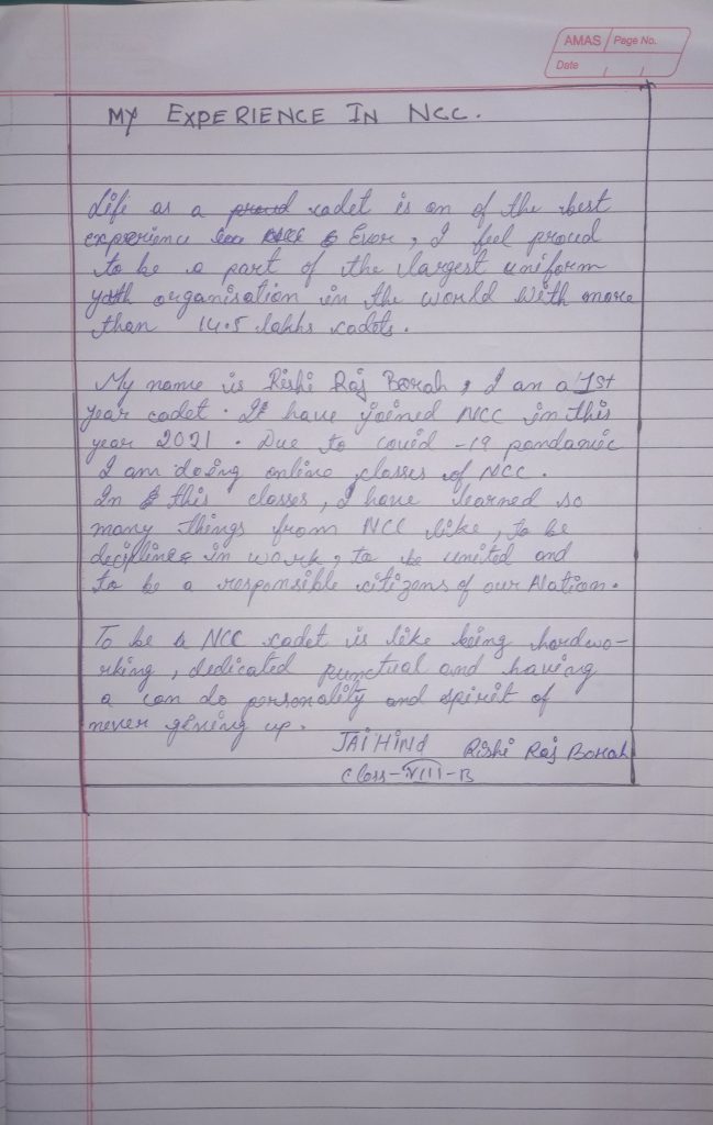 Myself L Cadet Akankhya Tamuli from 49 A Naval Unit NCC , I am so glad that I am a cadet from this unit. We celebrated our NCC Day with our beloved grandparents at old age home situated in Gaurisagar ,Assam. That moment were very special toward us .