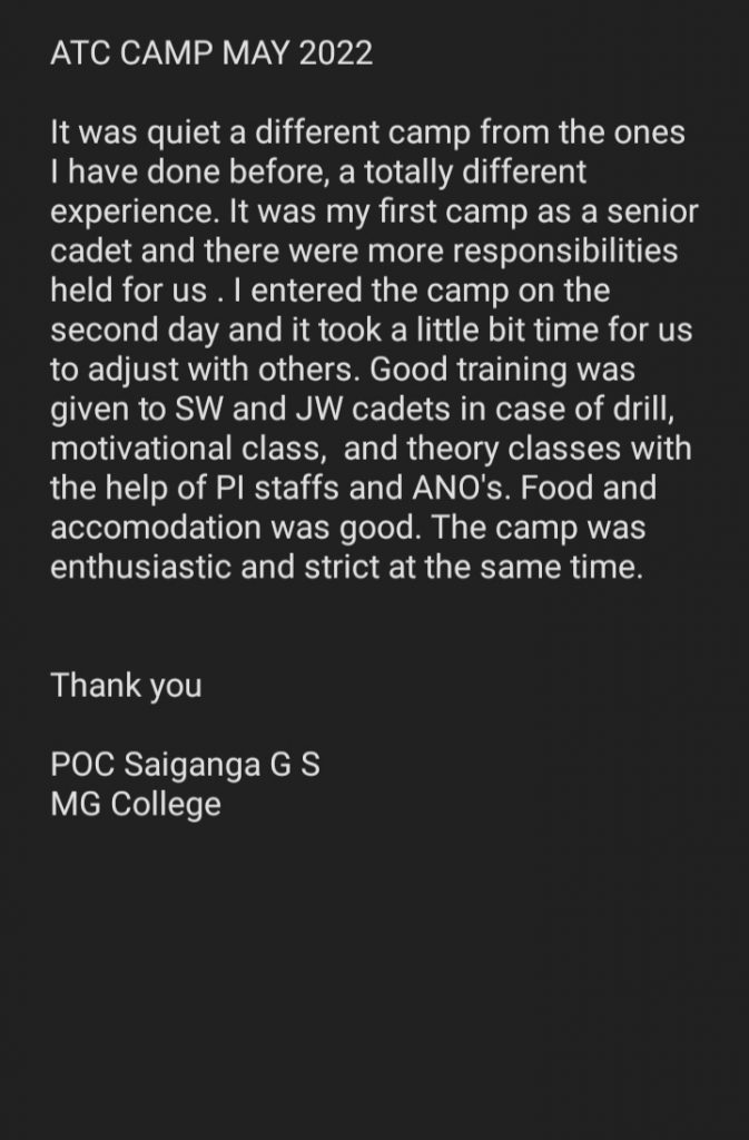 CADET JEEVA KL20SWN113106 MG COLLEGE 1 (K) NAVAL UNIT NCC TVM