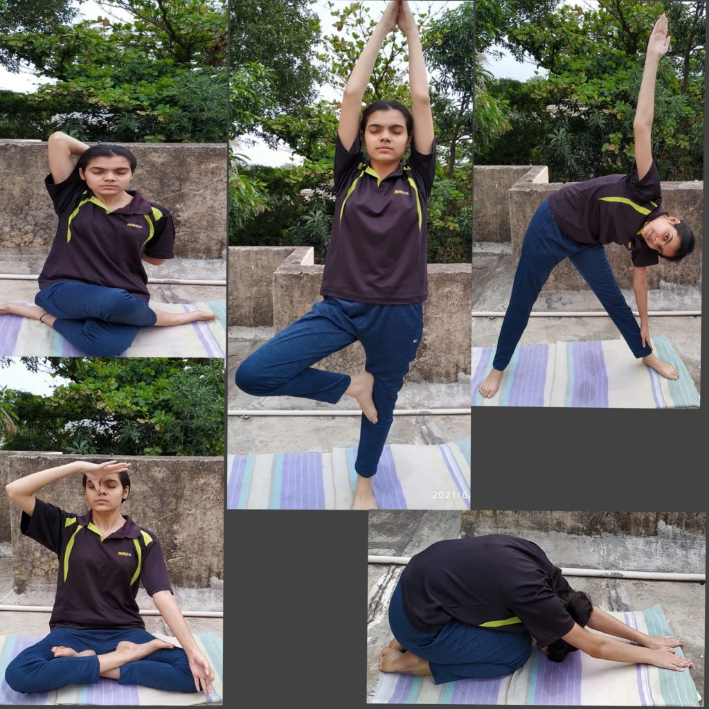 Cdt. Hemangi Mehata of 26 Gujarat Bn NCC, Surendranagar from H&HB Kotak Institute of Science Rajkot performing Yoga on International Day of Yoga at her home.