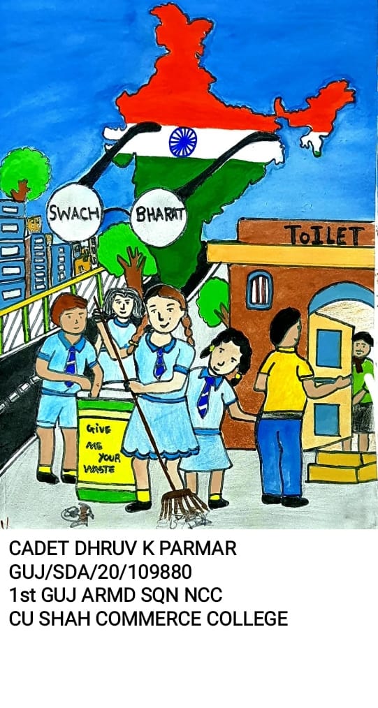 I cadet dhruv parmar, 1 guj armd sqn ncc from Ahmedabad, C.U.SHAH COMMERCE COLLEGE. A drawing about swachh bharat mission. We shouldn't throw the garbage and waste anywhere-anyplace .we should always use ?dustbin .jay hind????