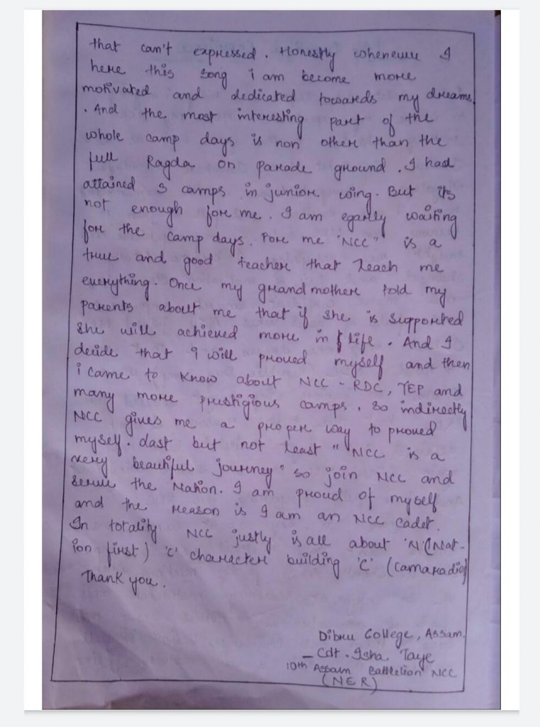 NCC taught me a lot in the field of discipline and punctuality and its of great honour to be a part of it.