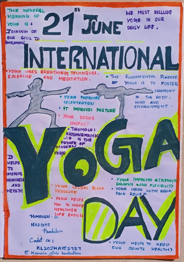 I Am HIMASEN G I am a 9th standard student in NSSGHS PANDALAM I here presented an image for the International Yoga day We celebrate International Yoga day on 21st June , I have written about the benefits of yoga through simple points