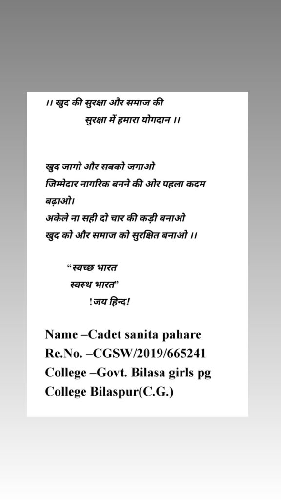 Hansu rani HR/SW/20/A/221554 1harayana girls betalion ambala group SD college ambala cantt