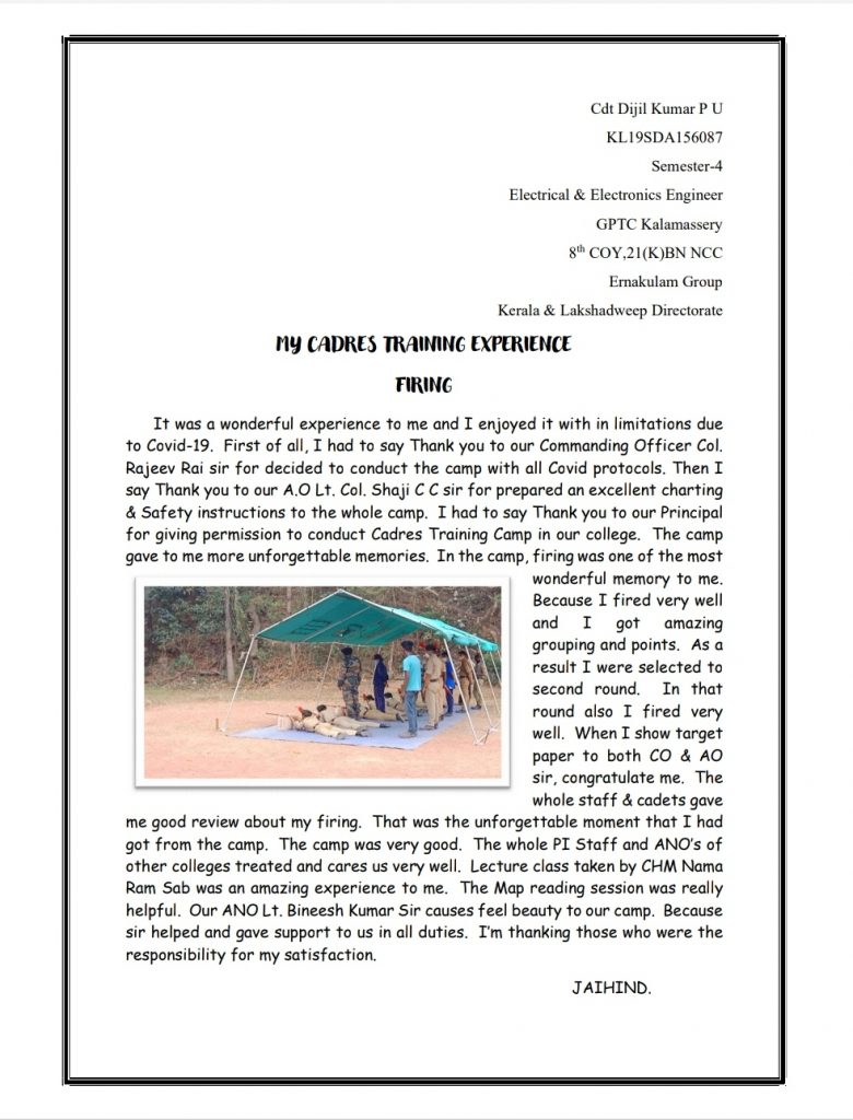 Cadet samanvitha T , 3 Kar Naval Unit, Karnataka & Goa Dte. Addressing cadets as great learners, I always took interest in training which included Subjects, Drill which inculcated , Unity, Comradship, leadership, discipline in us