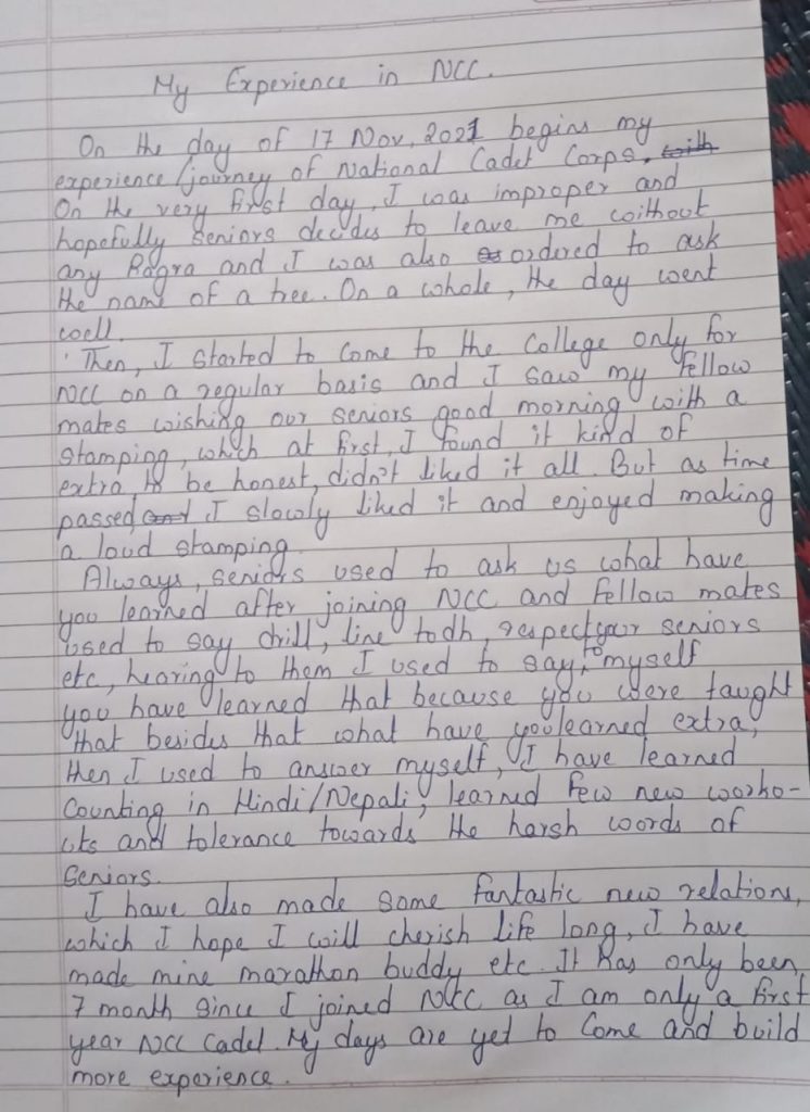 Cdt Rahul S Doddihal wrote an article on my motivation to join NCC