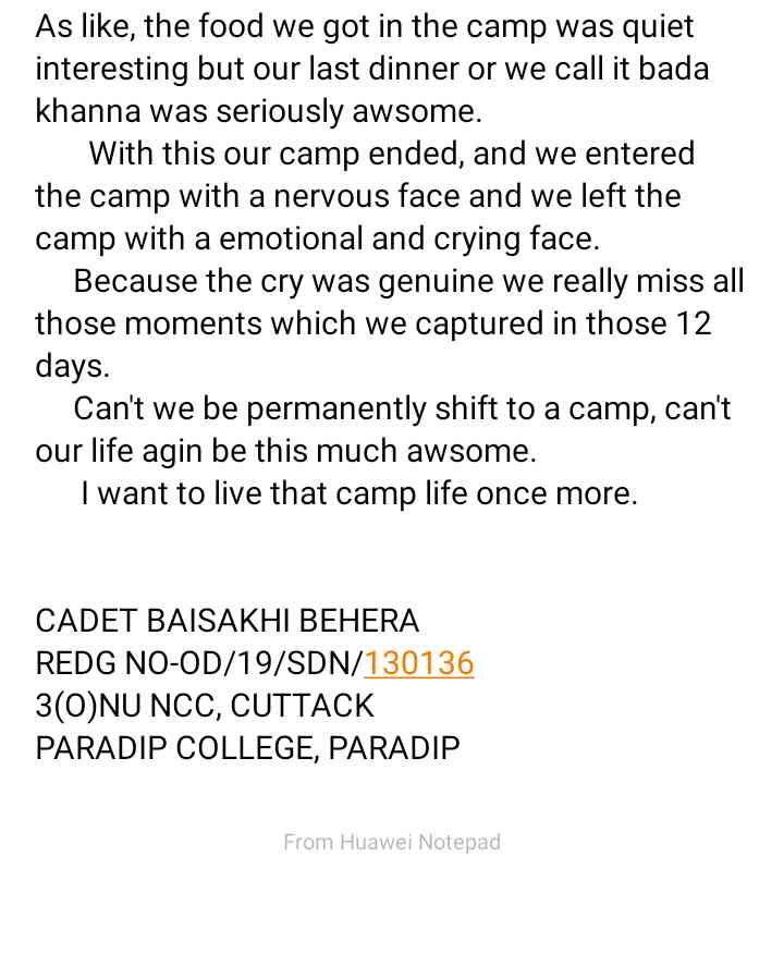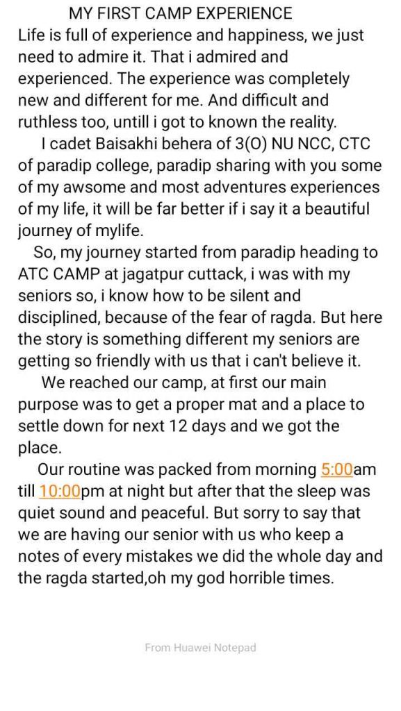 Cadet priyanka priyadarshini ojha OD19SWN130252 SRI JAYDEV COLLEGE OF EDUCATION AND TECHNOLOGY ,NAHARAKANTA 3(O) NAVAL UNIT, CUTTACK Sharing my activity regarding