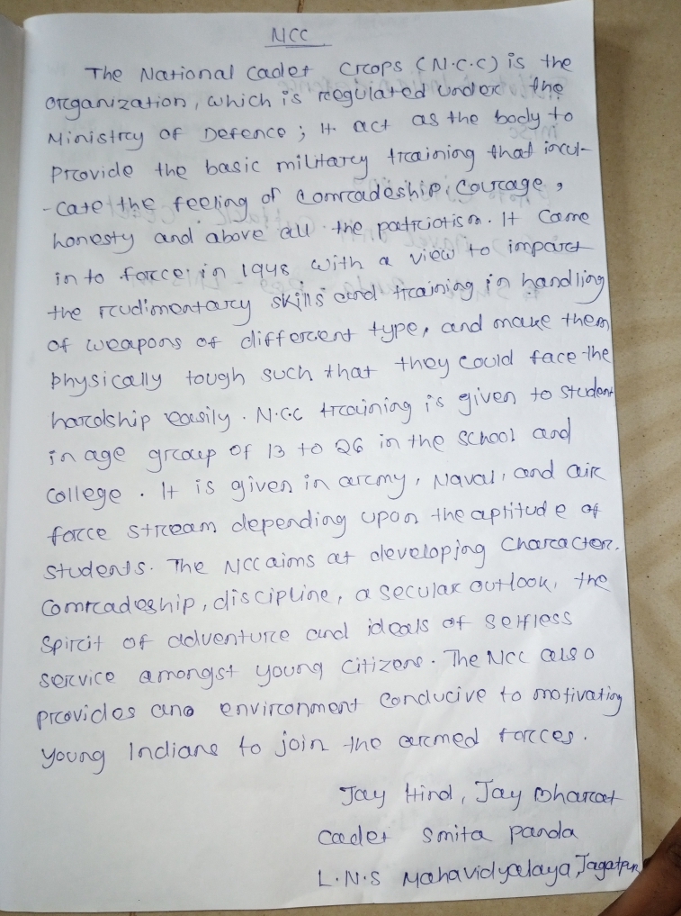 CADET RONIT KUMAR 2 UP EME COMPANY NCC BHU VARANASI GP HQ -A UP DIRECTORATE Bilingual Article It's about my experience about NCC Trainings and Camps.