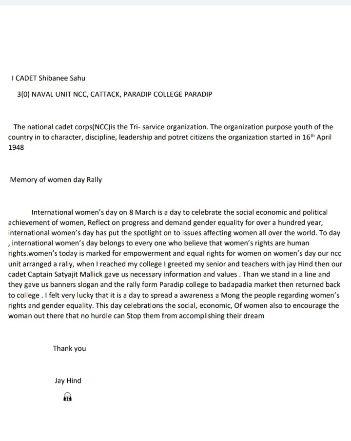 Myself Cadet Jyoti pareek from NSM city college 3(O) Naval unit. This article is about how a cadet learns many things while NCC training.