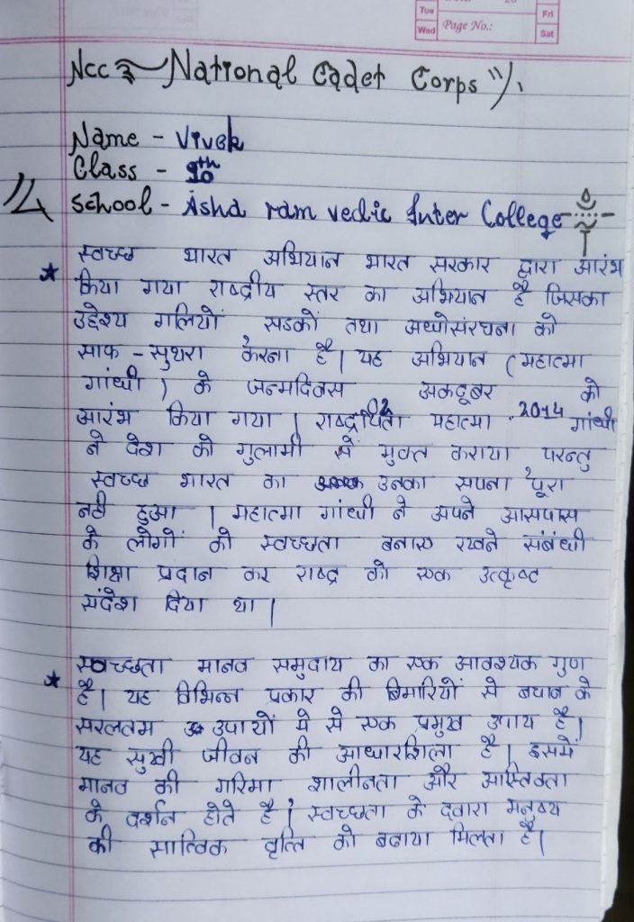I am a cadet . Name-vivek Regimental no- uk/20/JD/A/117766 School-asha ram vedic inter college