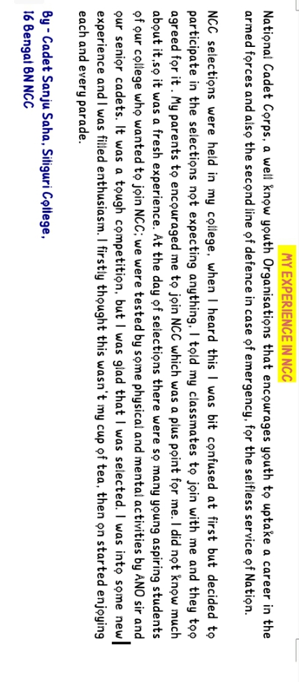 NAME :MANJUNATH RAGHUNATH KOLEKAR UNIT :29 KARNATAKA BN NCC KARWAR REGISTRATION NUMBER :KA21SDA554087 TOPIC :Experience of Independence Day celebration NCC
