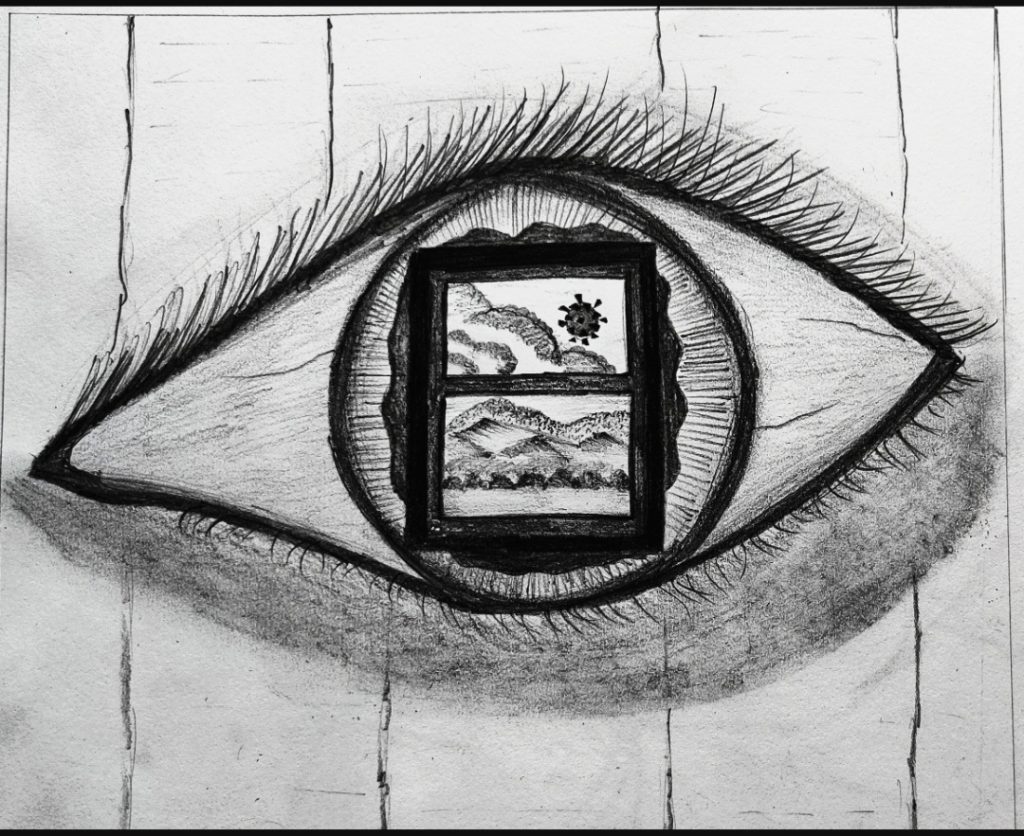 The picture shows the eye which sees closed window because of the covid 19 that reflects the hard time, less opportunity and alot of set back in life faced by many of us . In these critical situation.