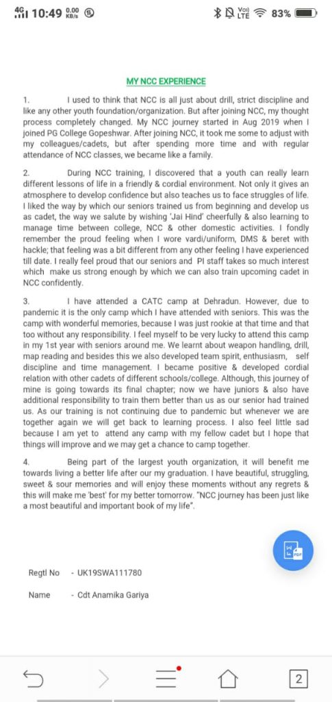 TN20 SDW 664815 SHERIN SNEHA J Loyola -ICAM College of Engineering and Technology 13TNBN NCC, Madras B GP, P &AN Directorate