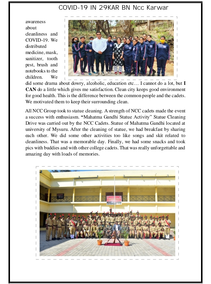 NAME MANJUNATH RAGHUNATH KOLEKAR UNIT :29 KARNATAKA BN NCC KARWAR REGISTRATION NUMBER :KA21SDA554087 TOPIC :WHAT DOES NCC TEACHES ME