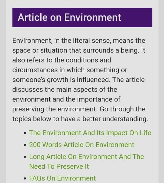 Human need a good environment to survive.