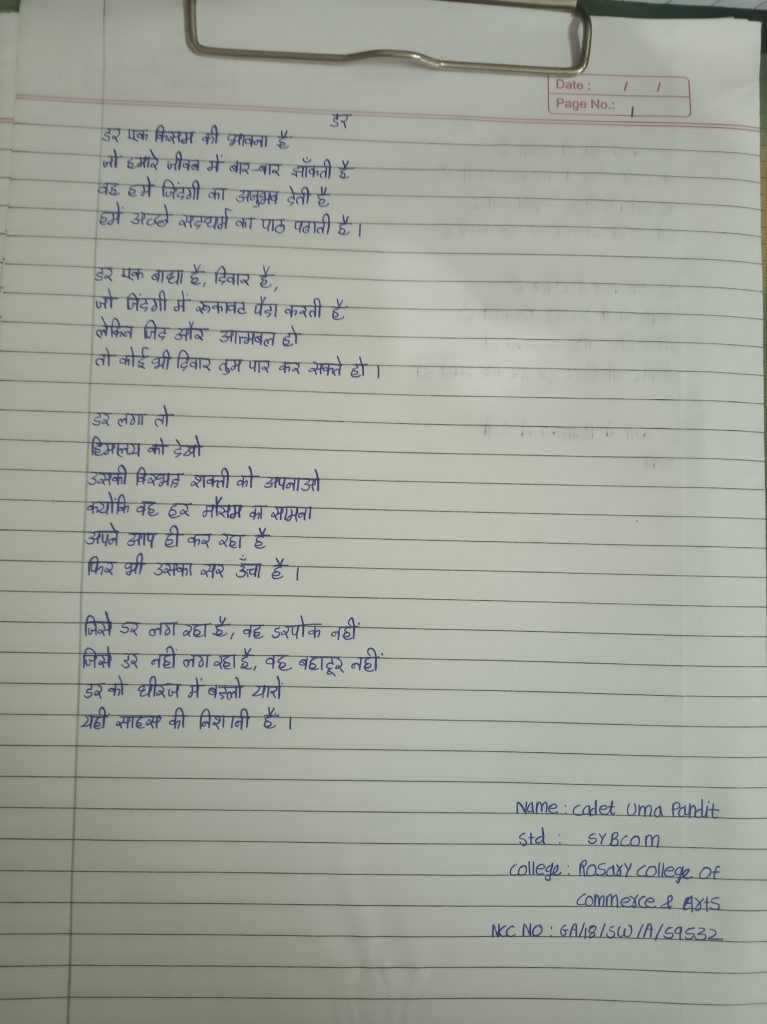 Unit : MP Girls Bn NCC