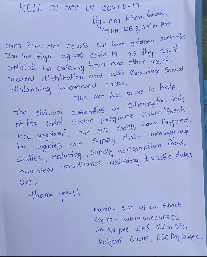 CDT RITAM GHOSH REG NO WB 19 SDA 150752