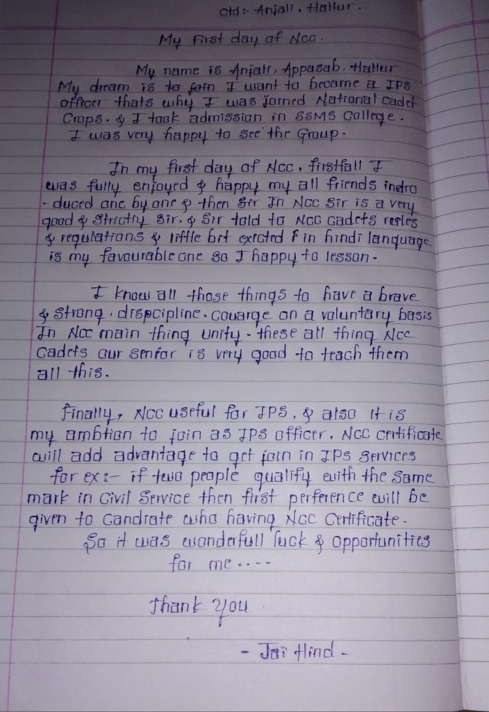 Anjali Hallur SSMS college athani 5/26 KAR BN Belagavi