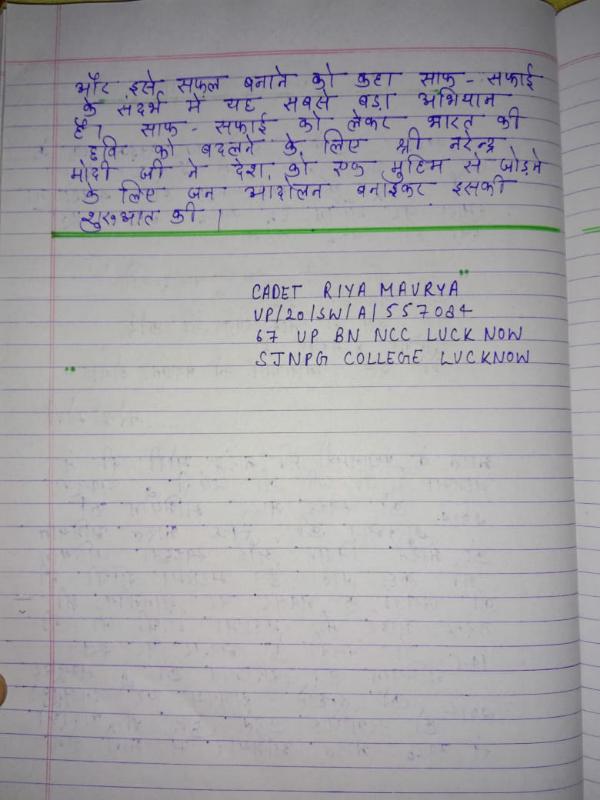 Cadet Riya Maurya Up/20/SW /A/557084 67 UP BN NCC LUCKNOW SJNPG COLLEGE lucknow