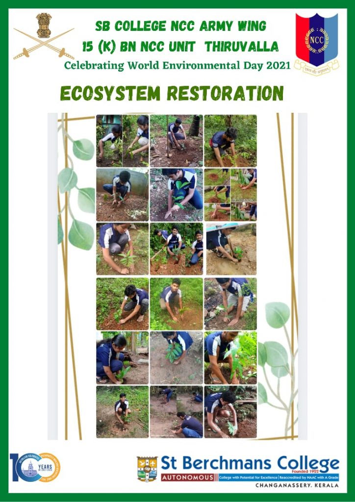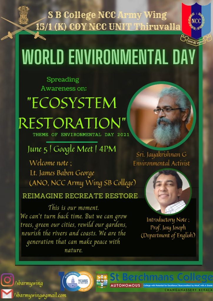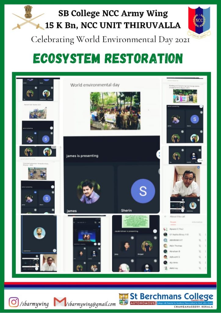plant saplings in their own houses. Considering the pandemic situation, NCC Army Wing of SB College conducted an Online Talk on "Ecosystem Restoration", which is the theme of Environmental Day this year