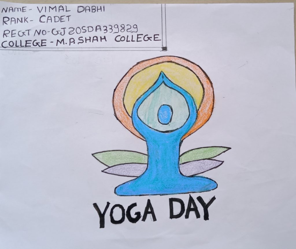 I CDT Vimal Dabhi from MP SHAH MUNI COMM COLLEGE, 27 Gujarat BN NCC jamnagar, Gujarat Directorate sharing a poster on international yoga day.