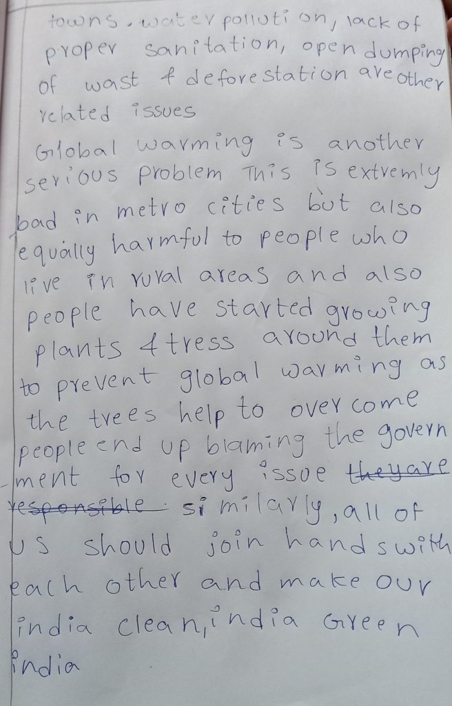 Iam Amoliga G , cadet number KL/20/SWA/102275 of 2(K)Bn Ncc Thirumala. I wrote about my activities on environmental day.
