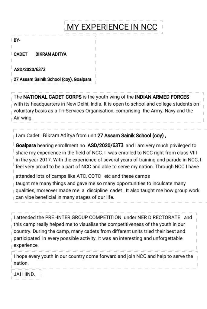 Myself Cdt. Bikram Aditya From, 27 Assam COY JD NCC Goalpara, Assam