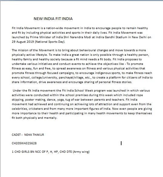 CADET NEHA THAKUR CH20SWA325628 1 CHD GIRLS BN NCC CHANDIGARH GROUP P, H, HP, CHD DTE (Army wing).