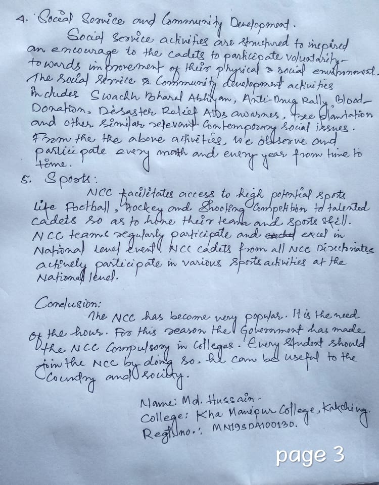 KHA MANIPUR COLLEGE ,NCC CADET ARTICLE - NCC ACTIVITIES