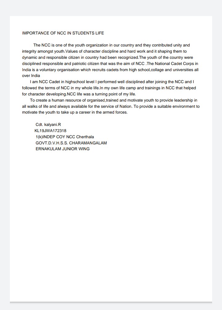 Cadet Shimna GL, 3rd year BA student in University college trivandrum