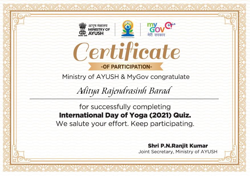 INTERNATIONAL YOGA DAY 2021 QUIZ CERTIFICATE