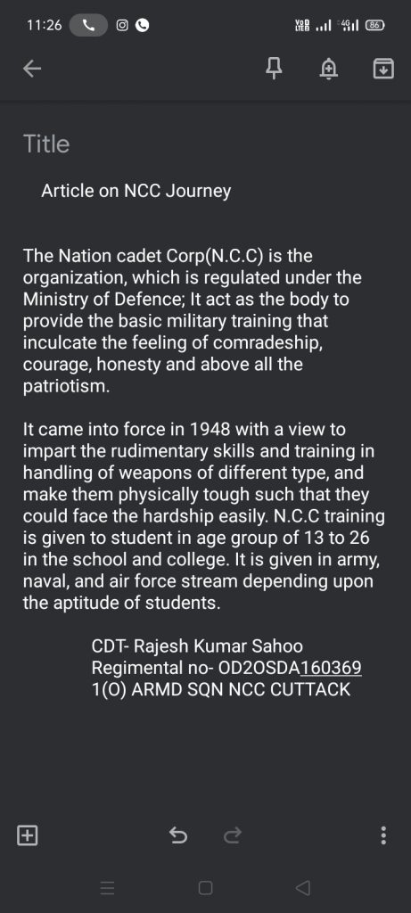 Myself, Cadet Josna Shibu Mathew, TN19SWA628164, studying in Stella Maris College. This is my sum-up on my experience as Cadet for the last two years.