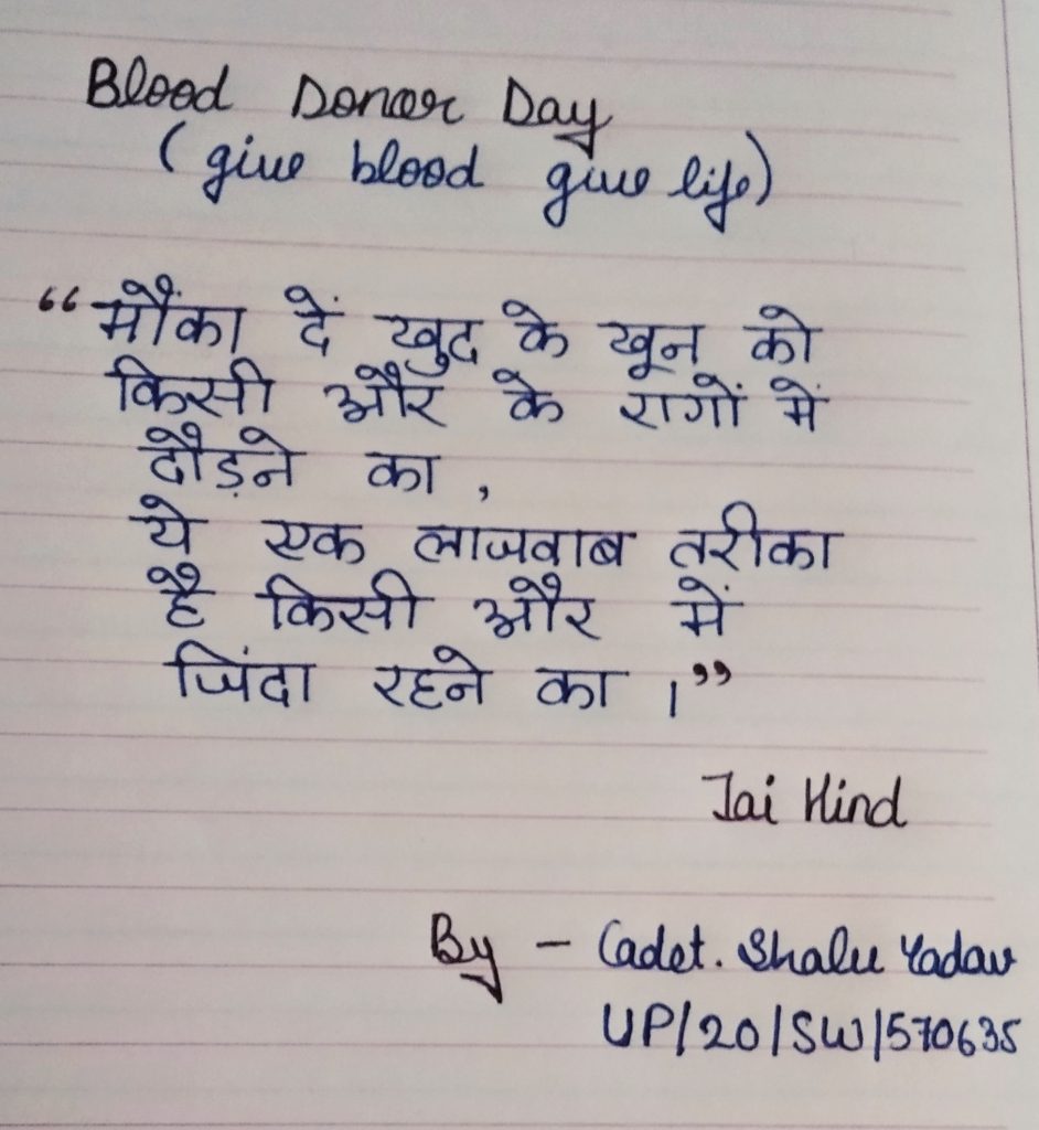Name---Garima Course---BCA 1st year College--- GCW,Sec-14,Gurugram, Haryana Enrollment no.--- HR/20/SWA/253502 Battalion--- 2HR(G),BN,NCC, ROHTAK Directorate--- PHHP&C