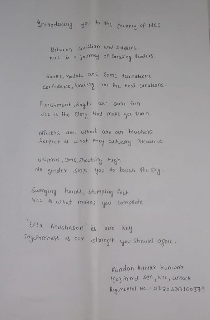 Kundan kumar kunwar 1(O) Armd sqdrn,NCC ,Cuttack