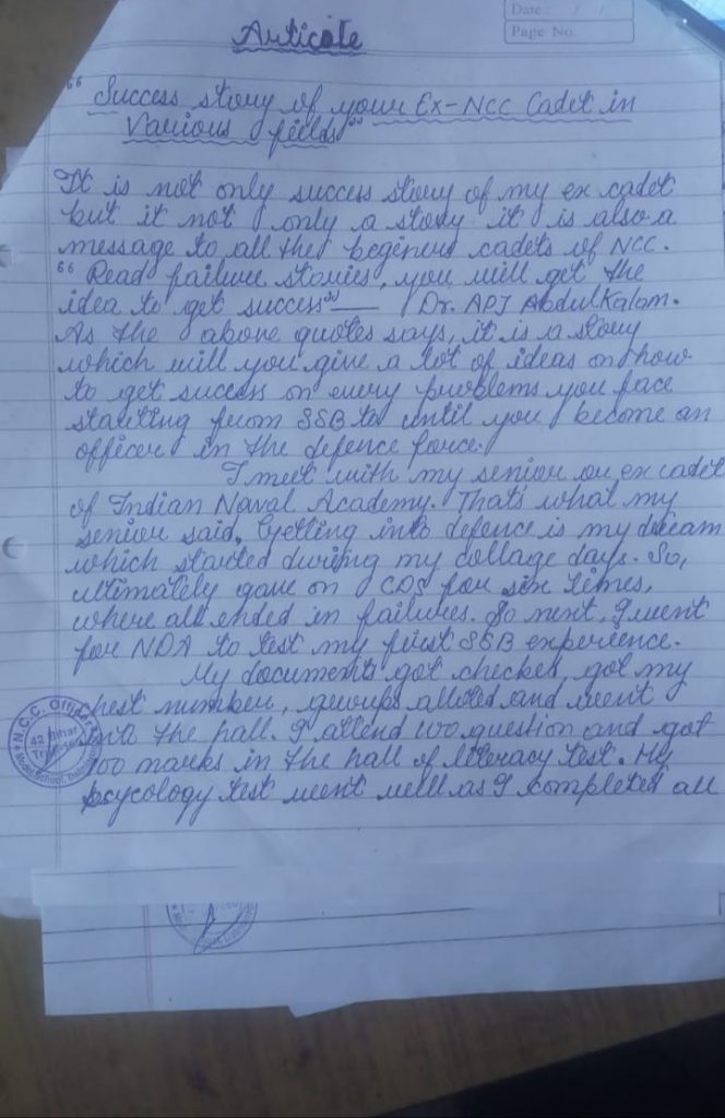 Article on success story of ex NCC cadet