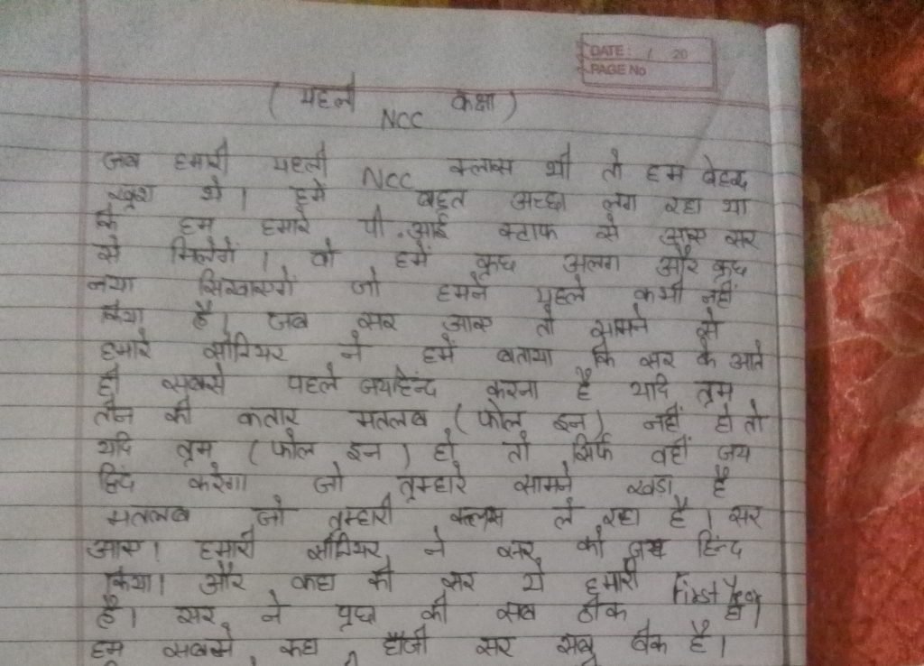 Jai Hind! L/CPL Deepika HAR/19/SWA/257136 3 HAR GIRLS BTALLIAN I have shared my experience in first class of NCC. I am very excited.