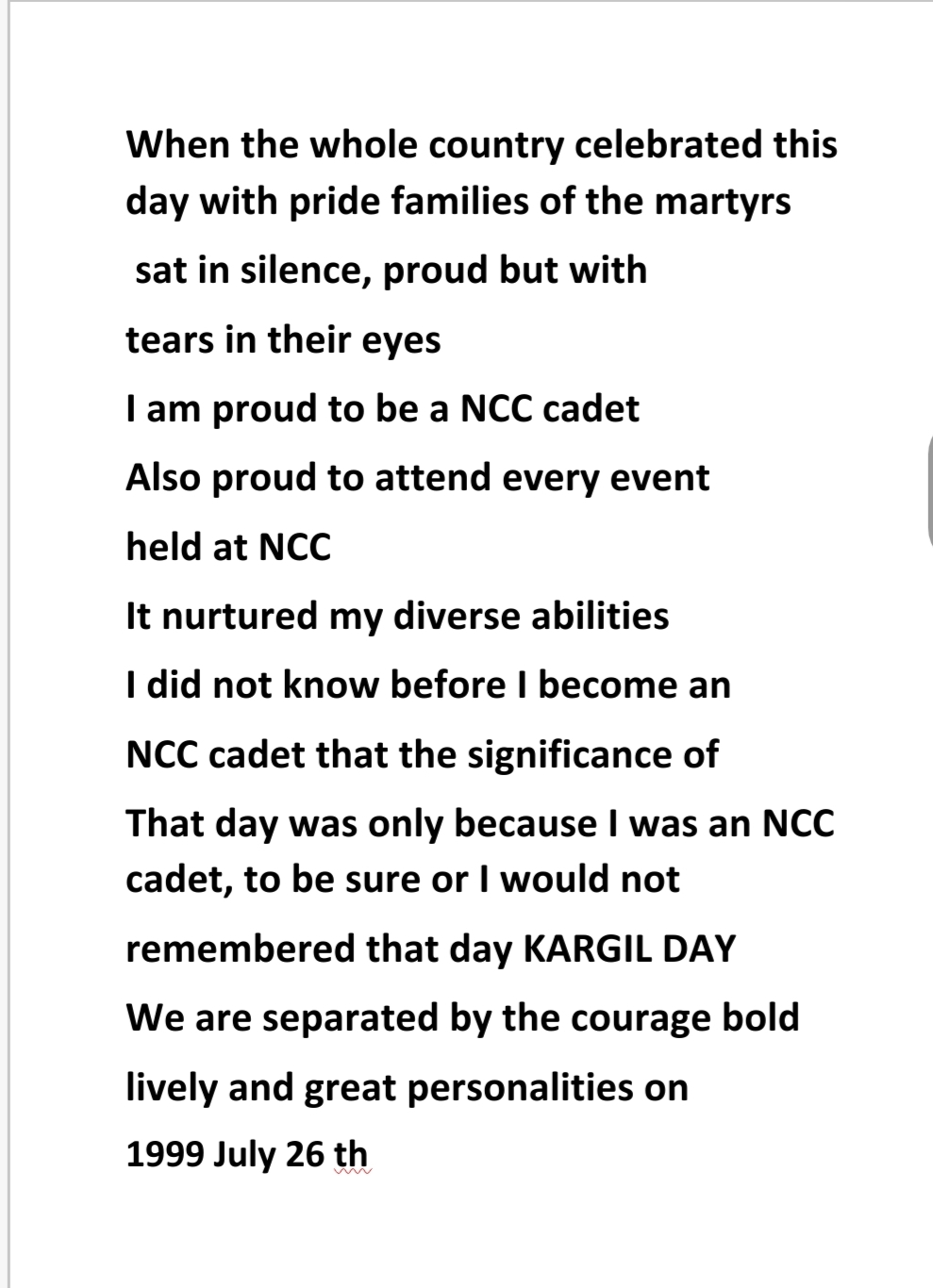 I am LCPL ATHULYA K. M KL18SWA188374 SES COLLEGE, SREEKANDAPURAM 31(K) BN NCC KANNUR CALICUT GROUP KERALA LAKSHADWEEP DIRECTORATE I share my my 1st camp experience in ncc