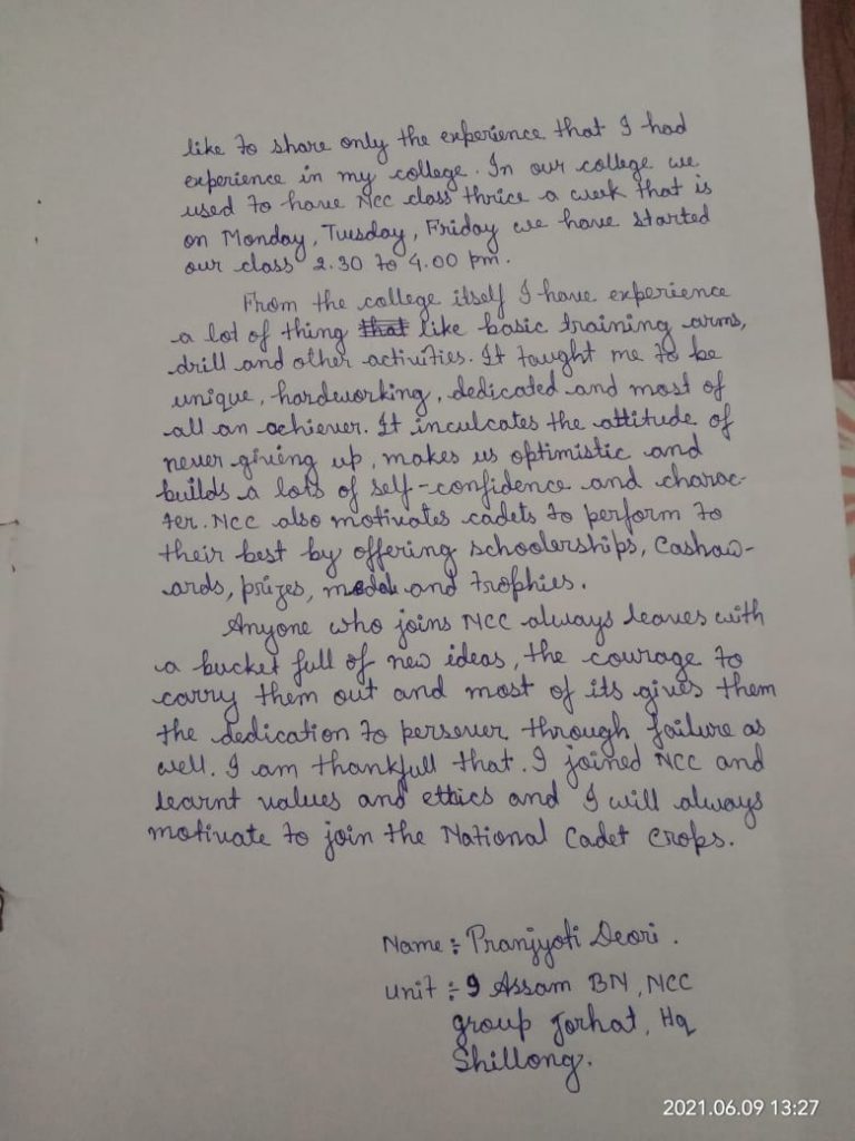 Submitted by Cdt. Shivani Pandey from Avadh Girls Degree College, 19 UP G BN NCC, Lko, UP