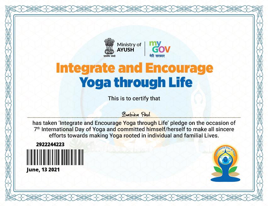 Cdt. Babita Paul uploading the Certificate of Yoga Day.
